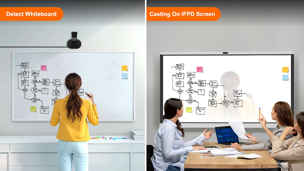 The Mysher VB861A is a next-generation whiteboard camera designed for seamless integration with Interactive Flat Panels via USB. Unlike conventional cameras, the VB861A intelligently recognizes whiteboards, blackboards, and greenboards, delivering crystal-clear content with advanced features such as presenter semi-transparency and image enhancement on both Android and Windows platforms.