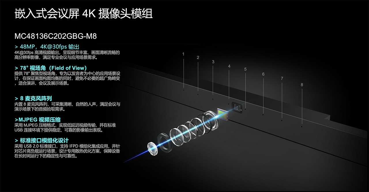 MC48136C202GBG 是一款面向 交互智能平板(IFPD)及 USB 摄像应用 的标准化摄像模组,适用于对系统兼容性要求较高的集成场景。