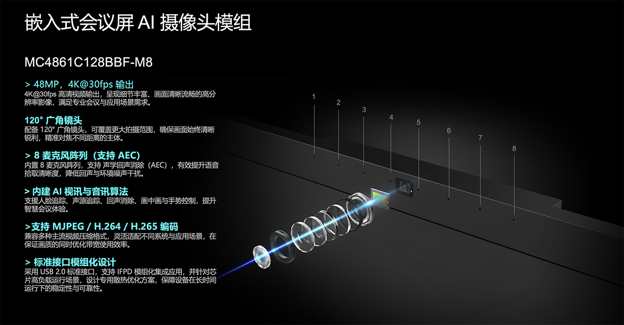 MC4861C128BBF 是一款面向 交互智能平板(IFPD) 的单镜头 AI 摄像模组,适用于会议与教学等标准应用场景。